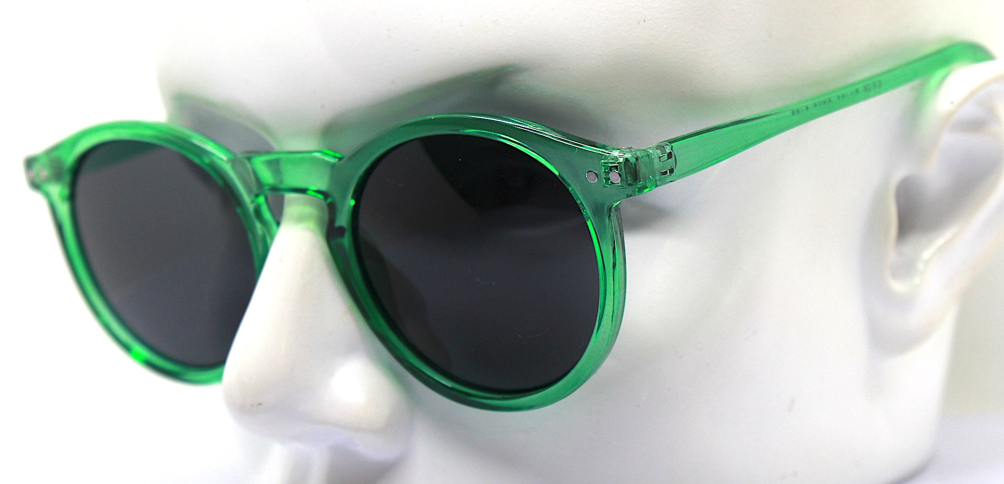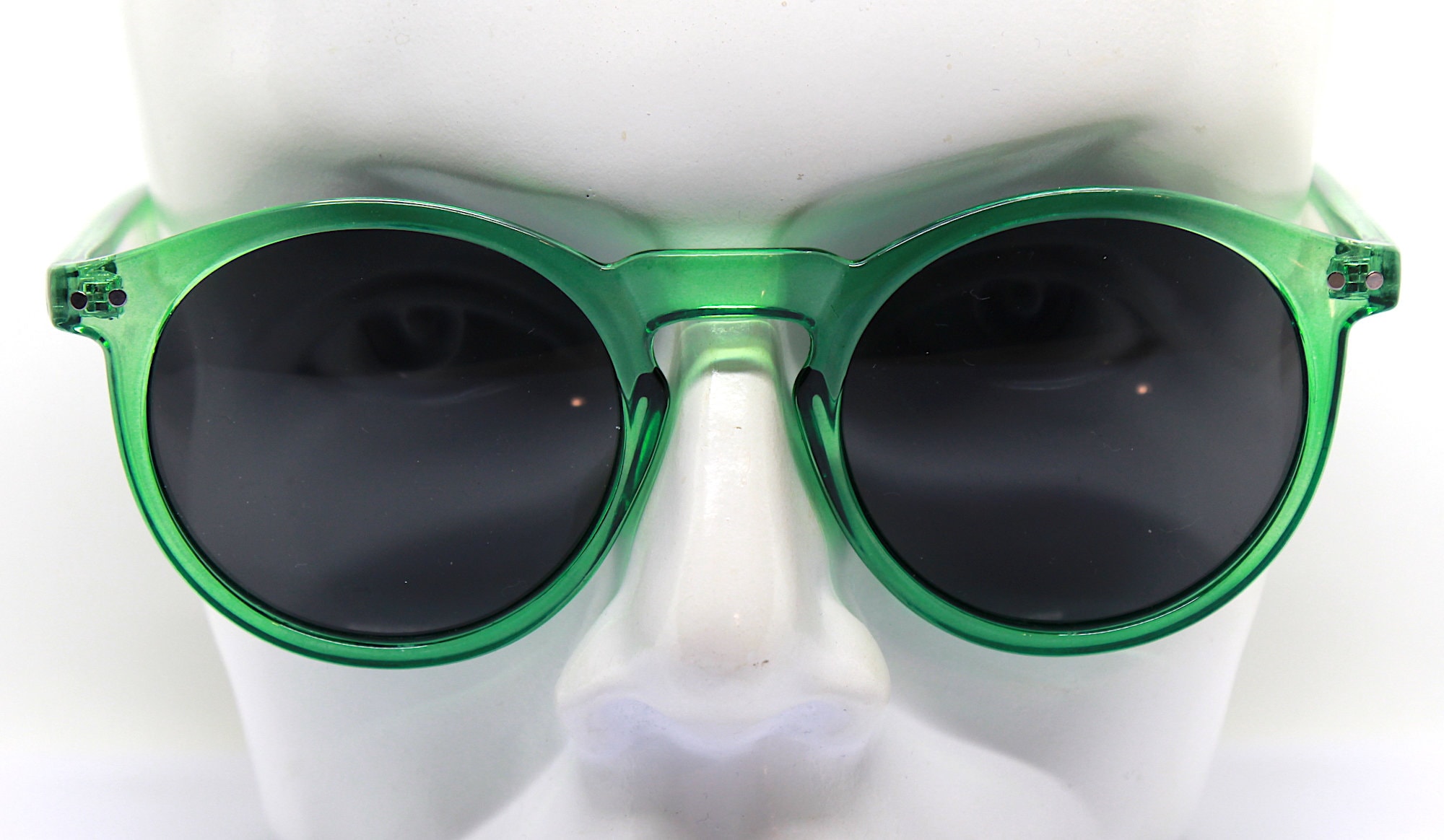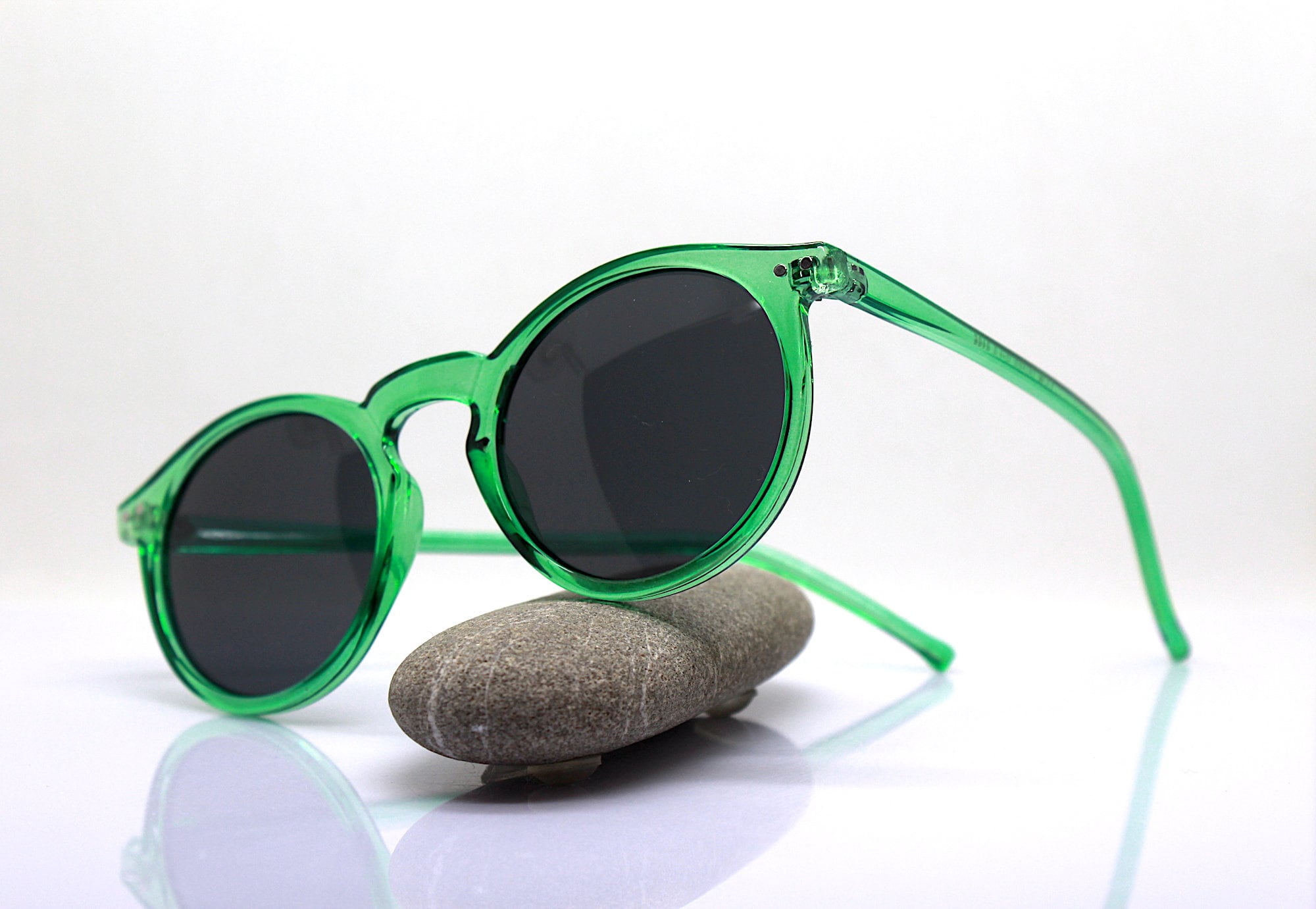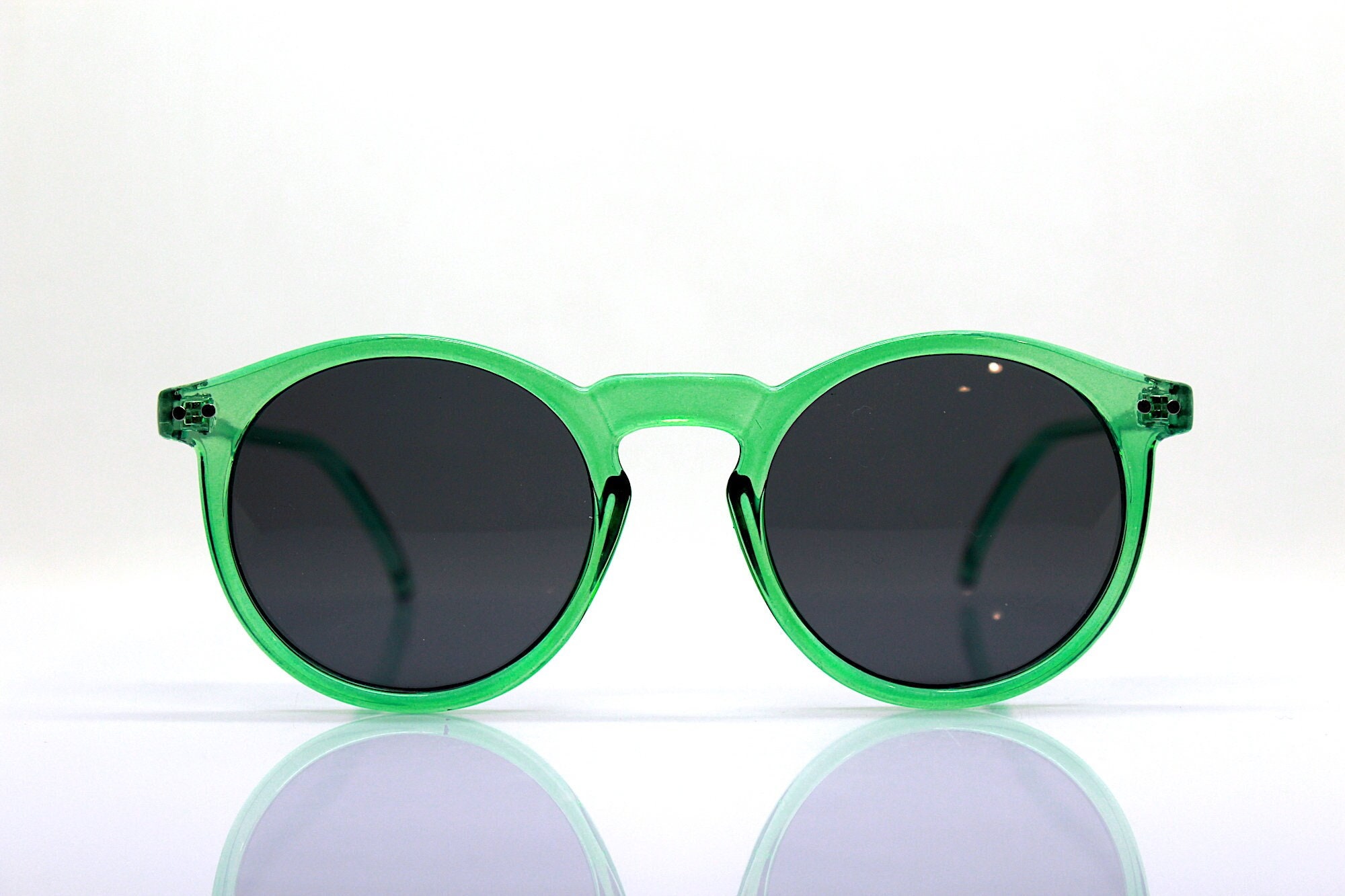 Round oval classic sunglasses man woman transparent crystal green frame black lens retro boho hippy vintage style, Green sunglasses