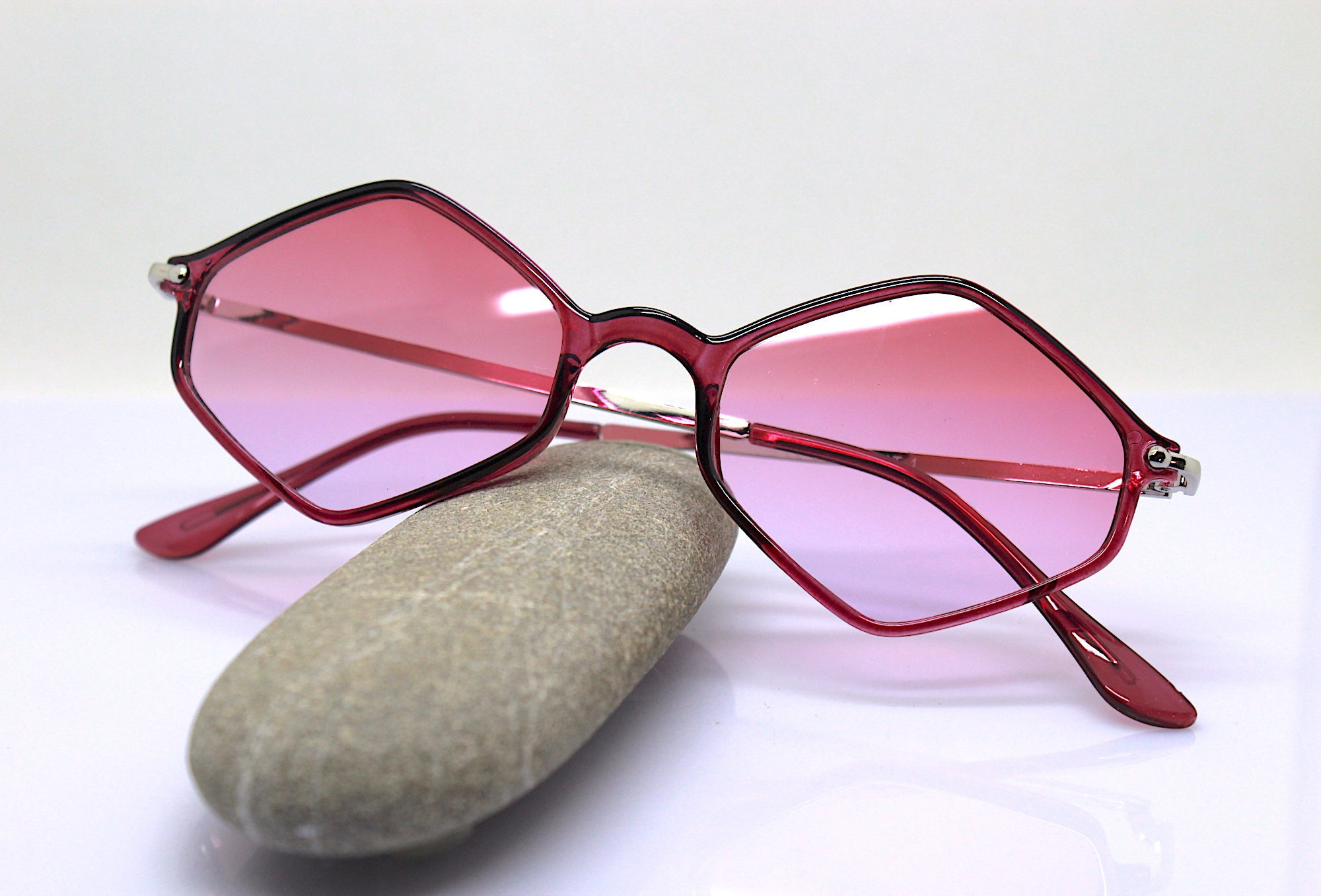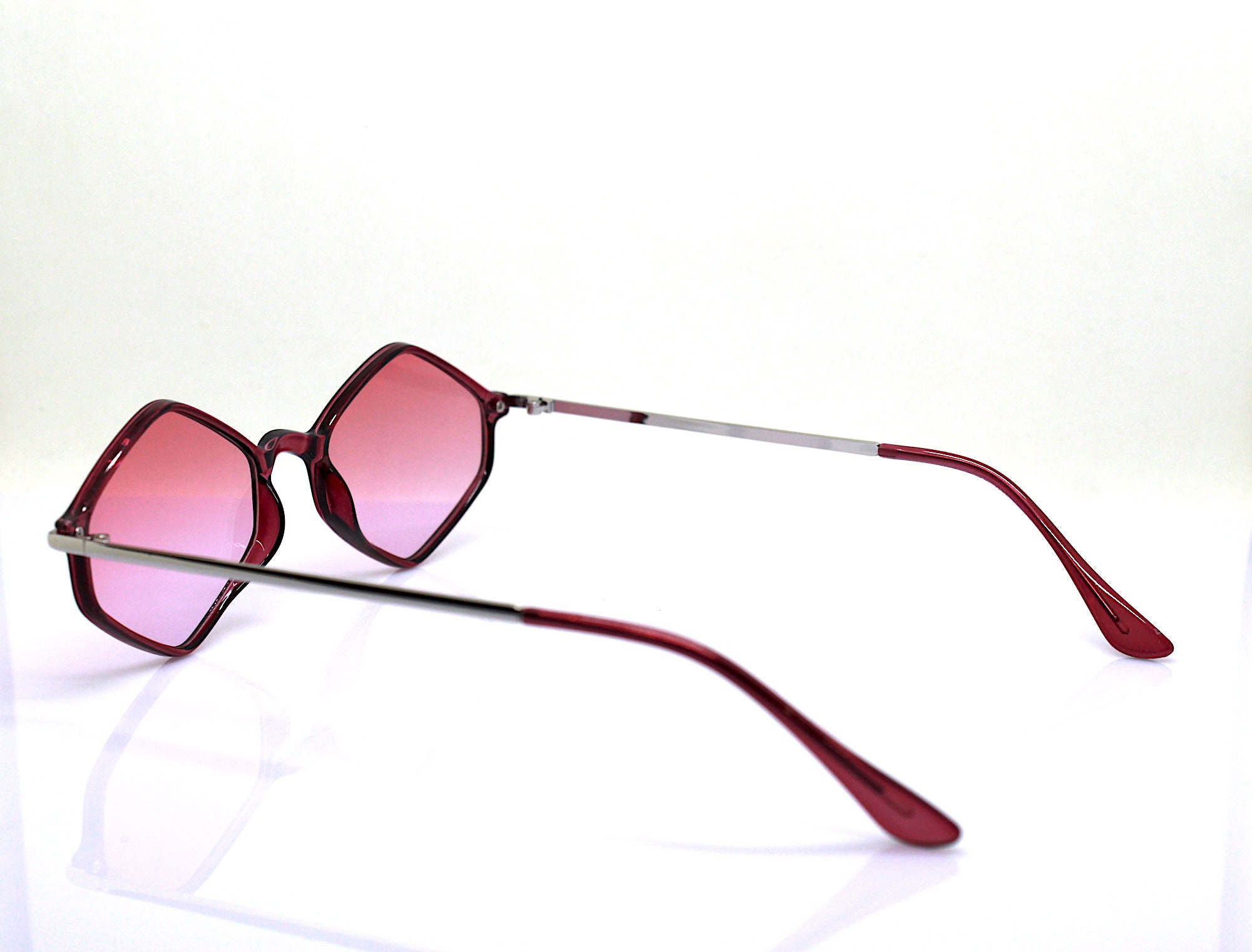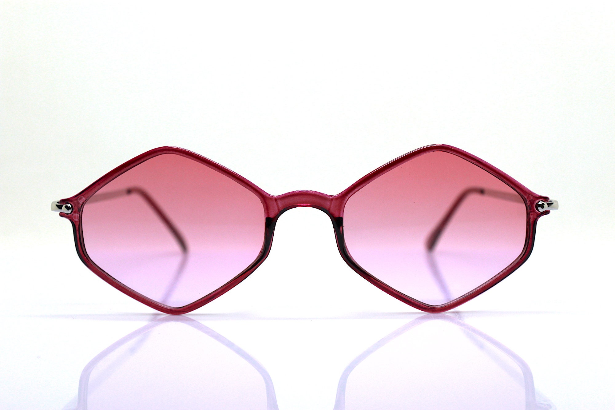 Hexagonal diamond rhombus sunglasses woman man silver purple frame shaded light pink lens hippies boho 70s 80s sunglasses woman rhombus