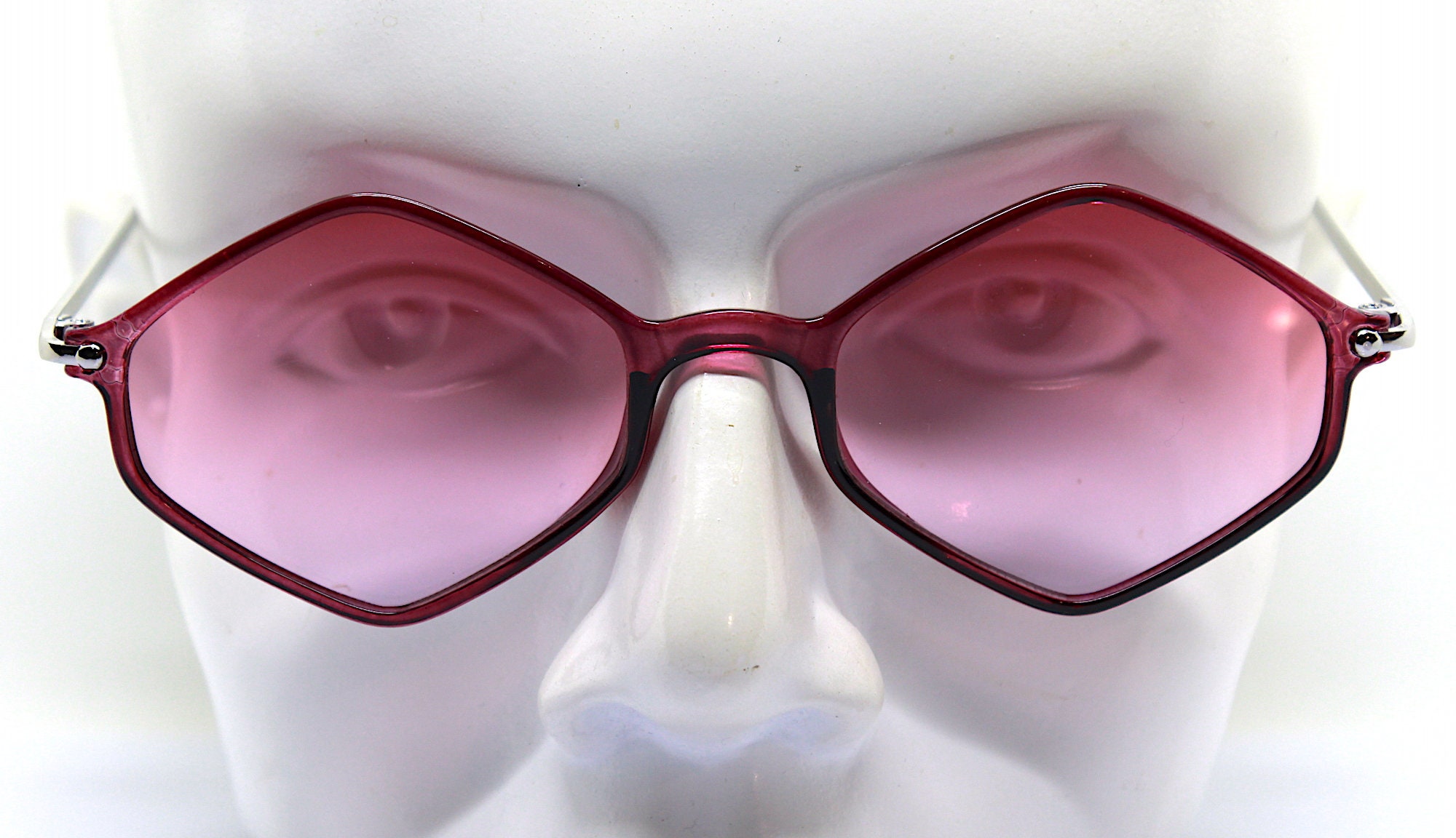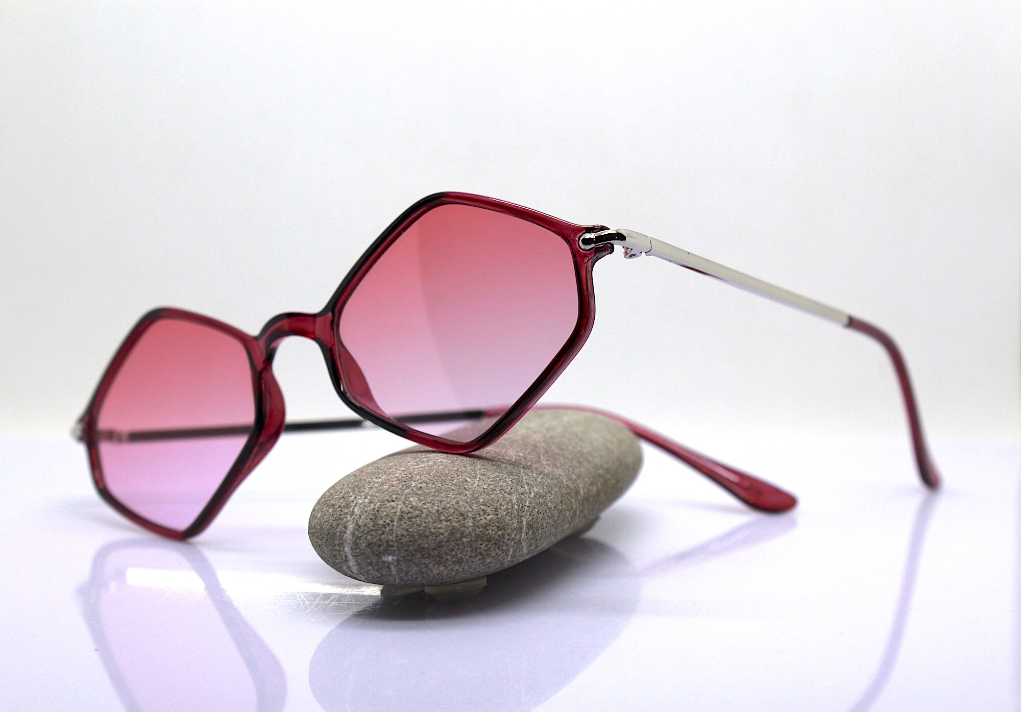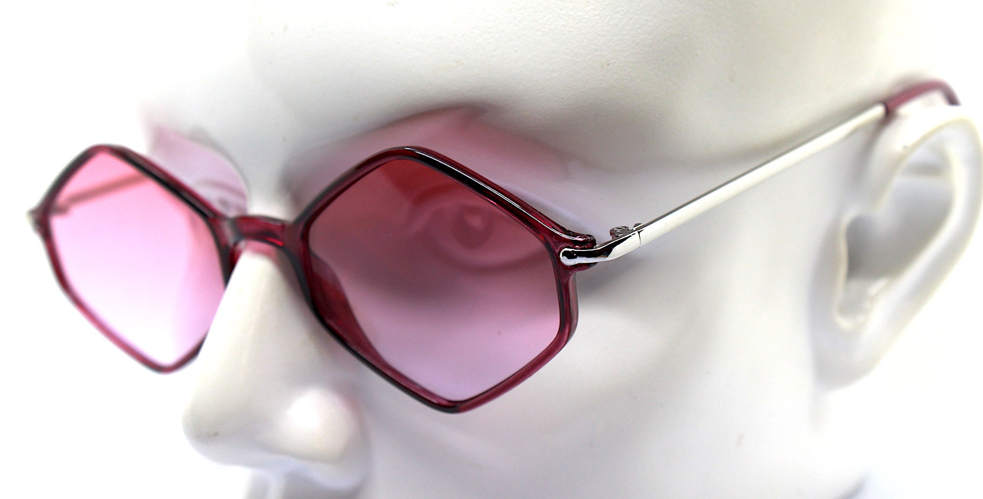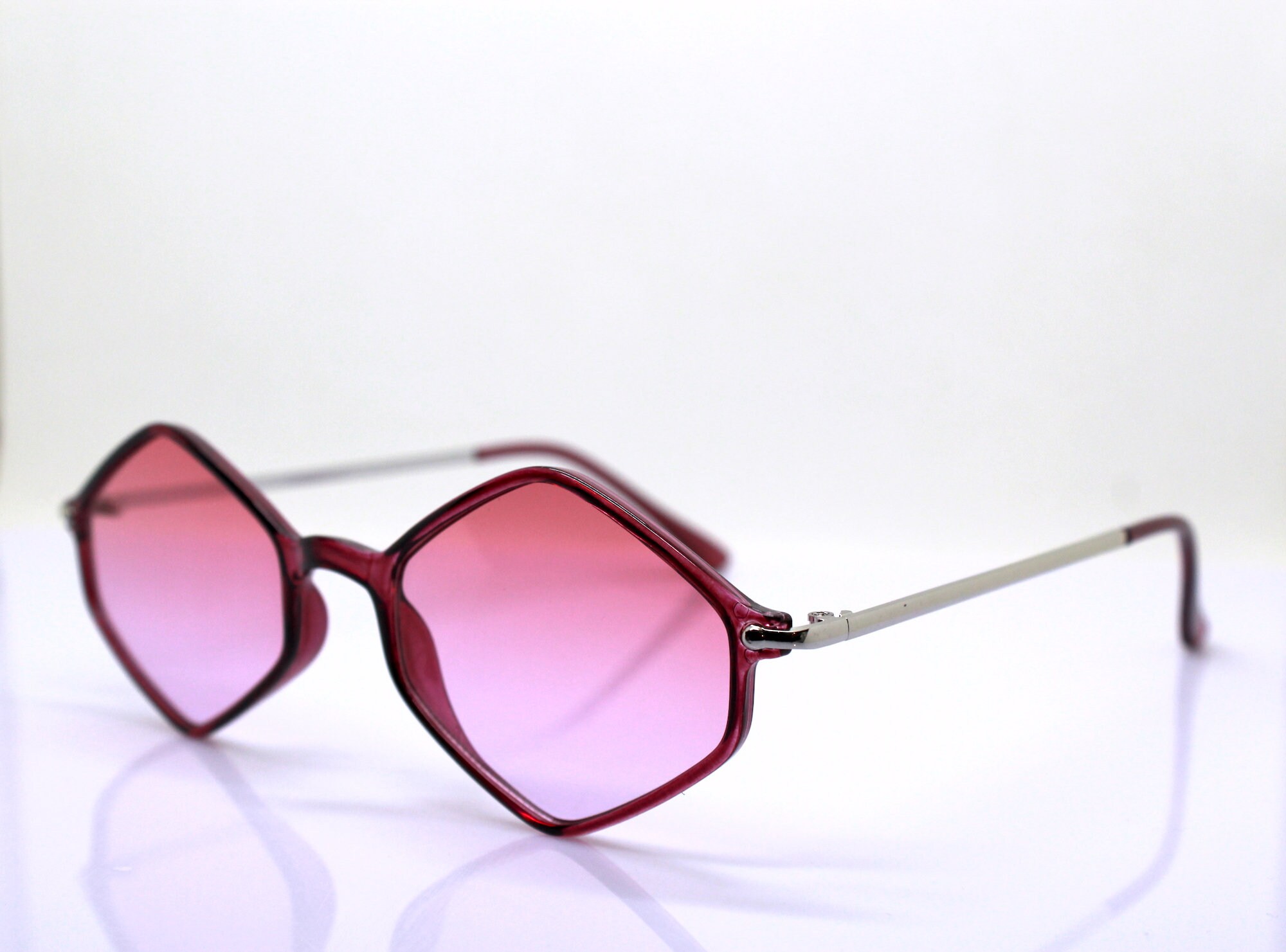 Hexagonal diamond rhombus sunglasses woman man silver purple frame shaded light pink lens hippies boho 70s 80s sunglasses woman rhombus