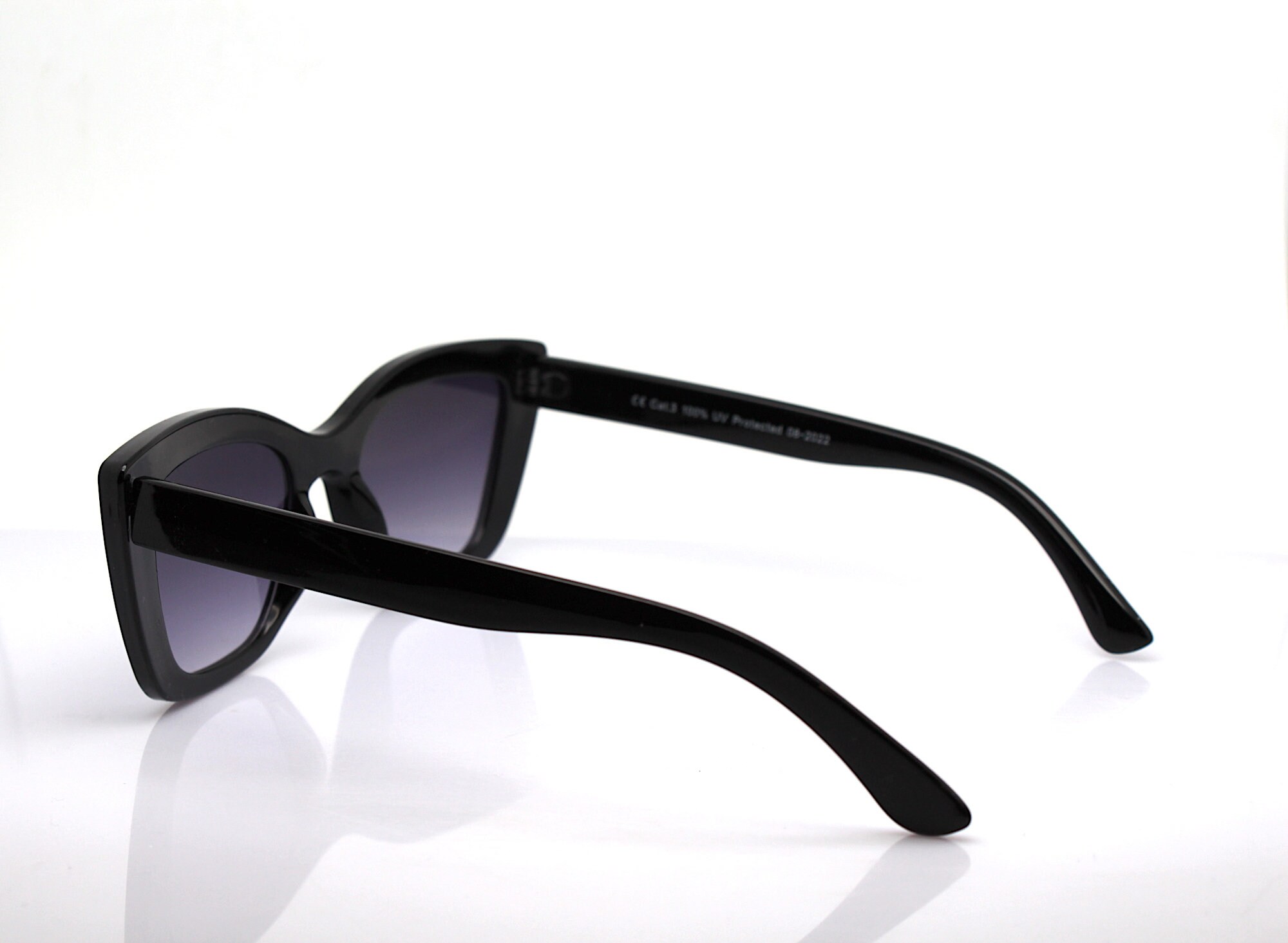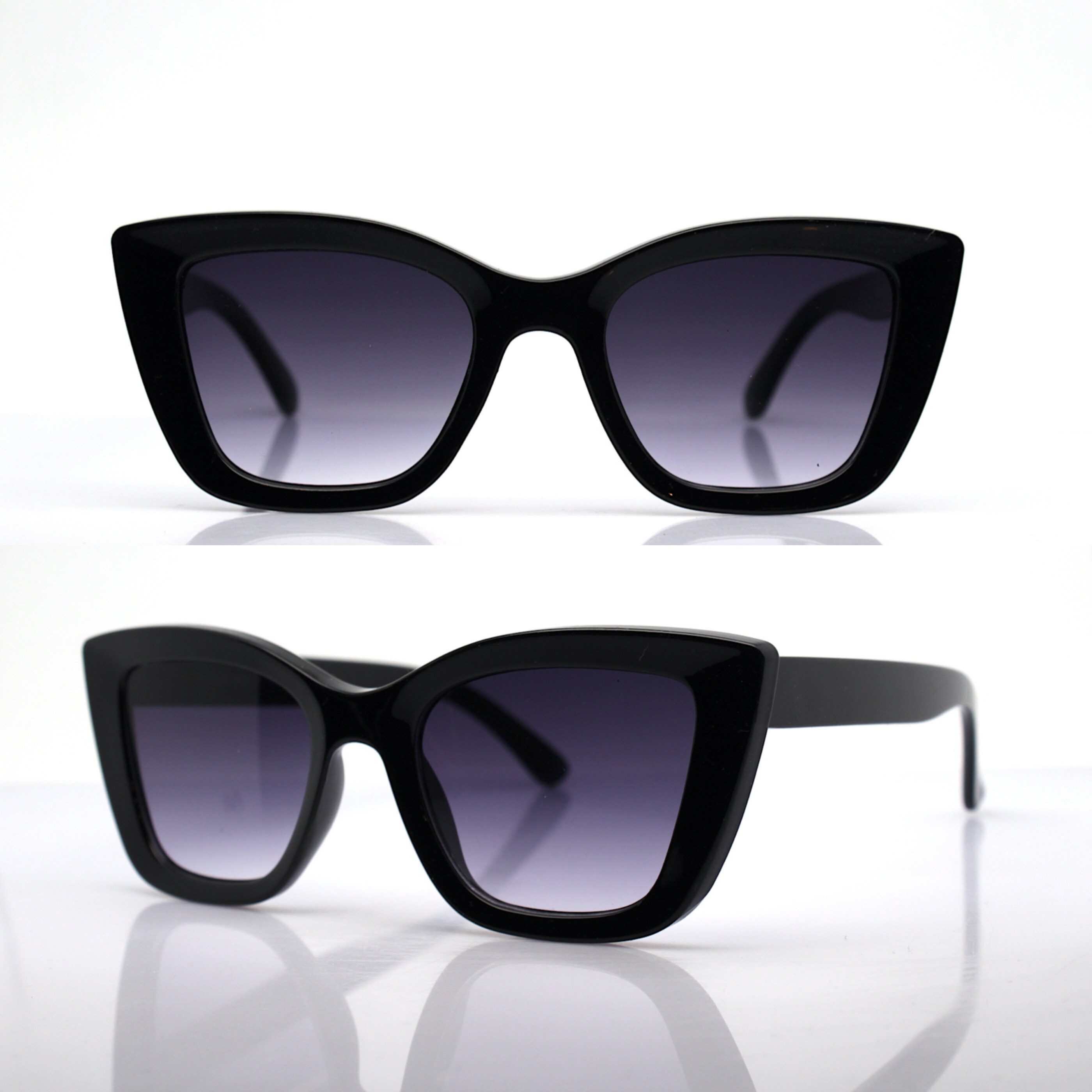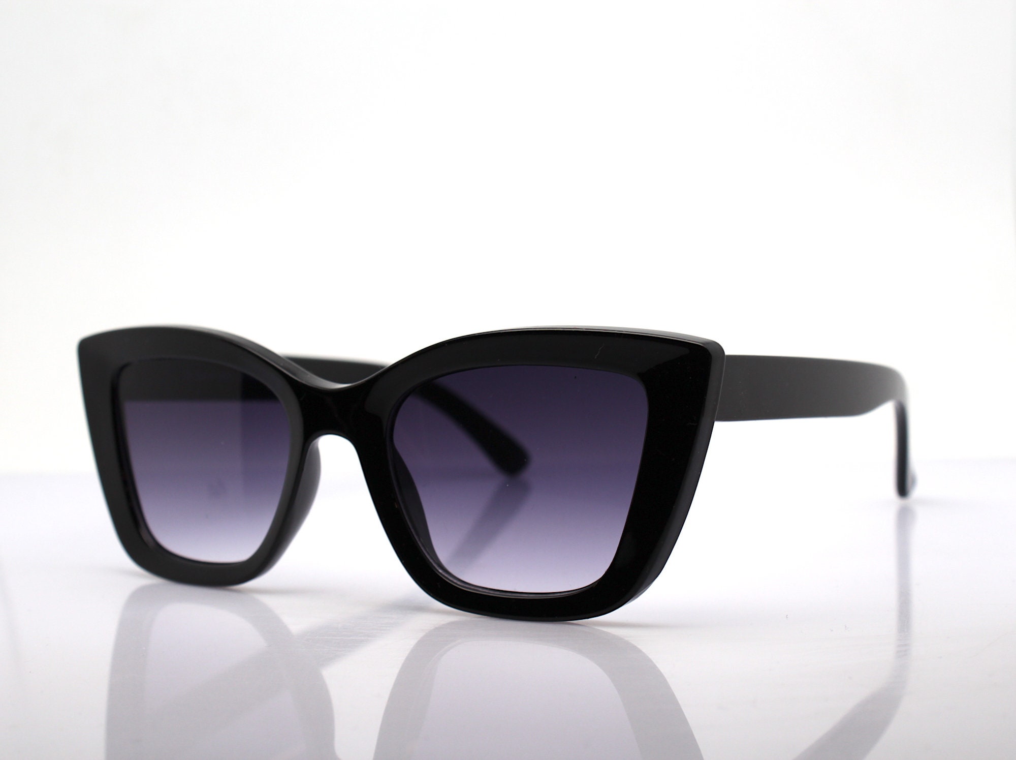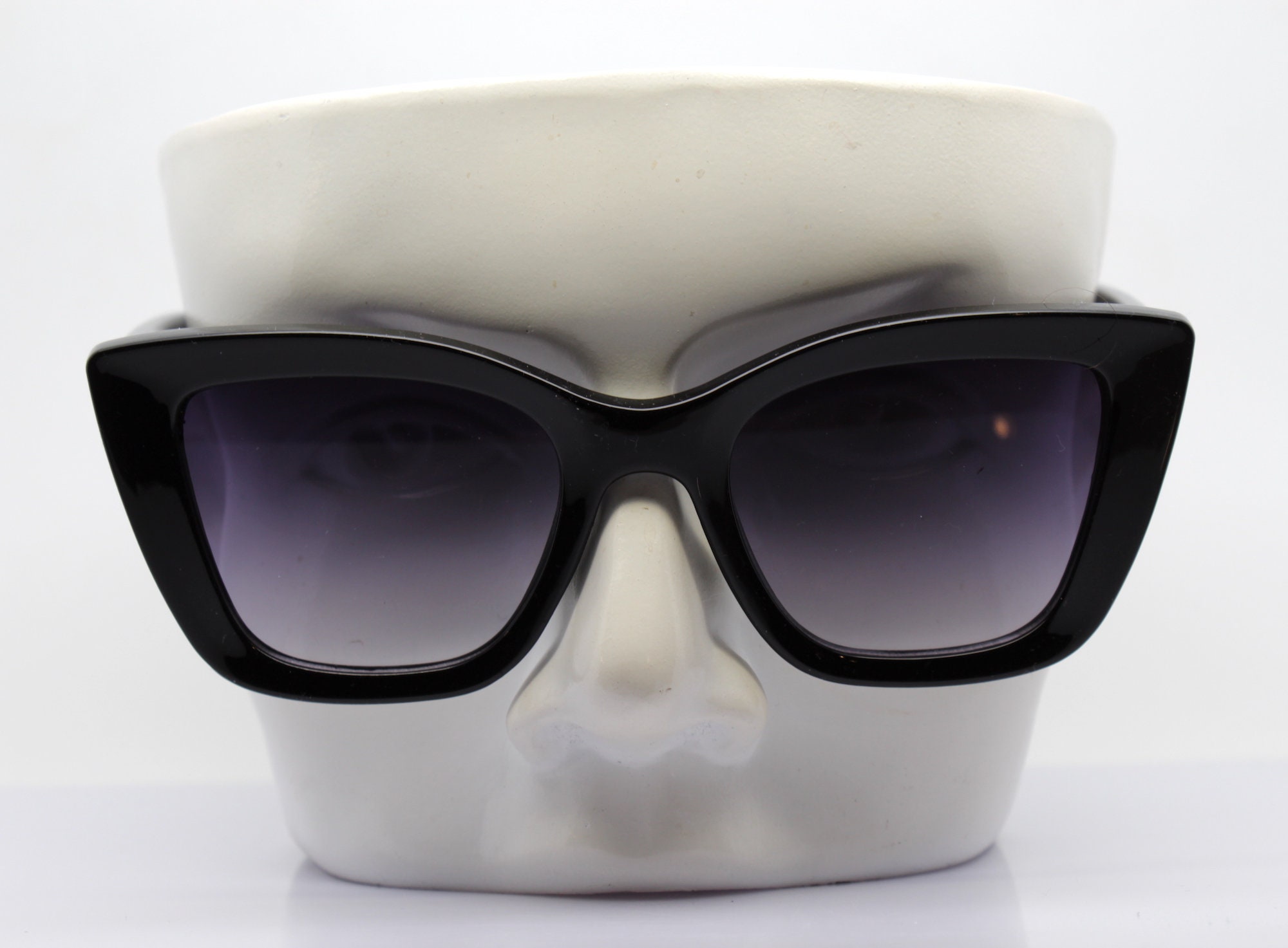 Cat eye's square classic sunglasses woman glossy black frame gradient shaded black lens vintage boho hippy retro style 50s 60s, glasses