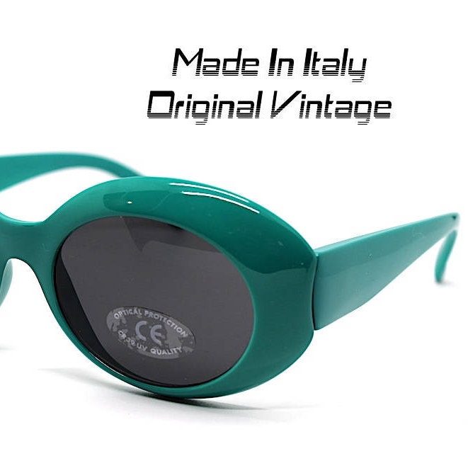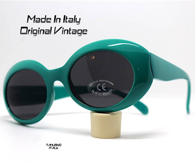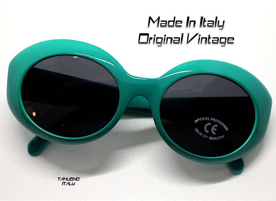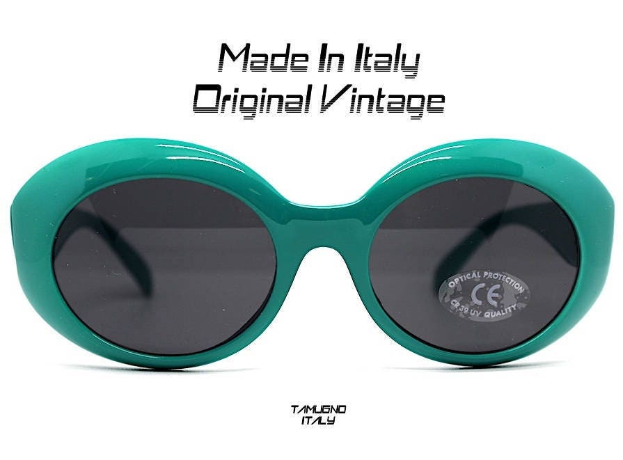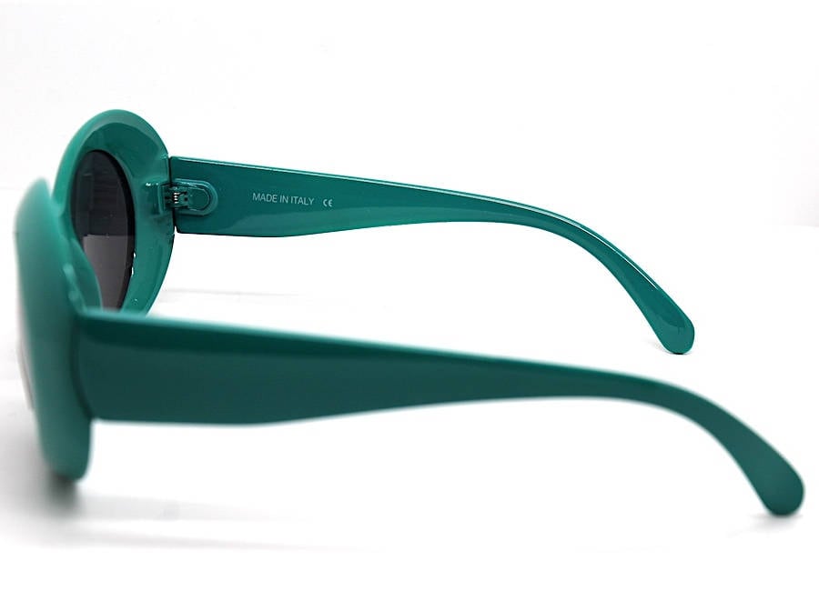 MADE IN ITALY classic oval big round sunglasses woman glossy green frame black lens retro rock style vintage 90s, round women's glasses