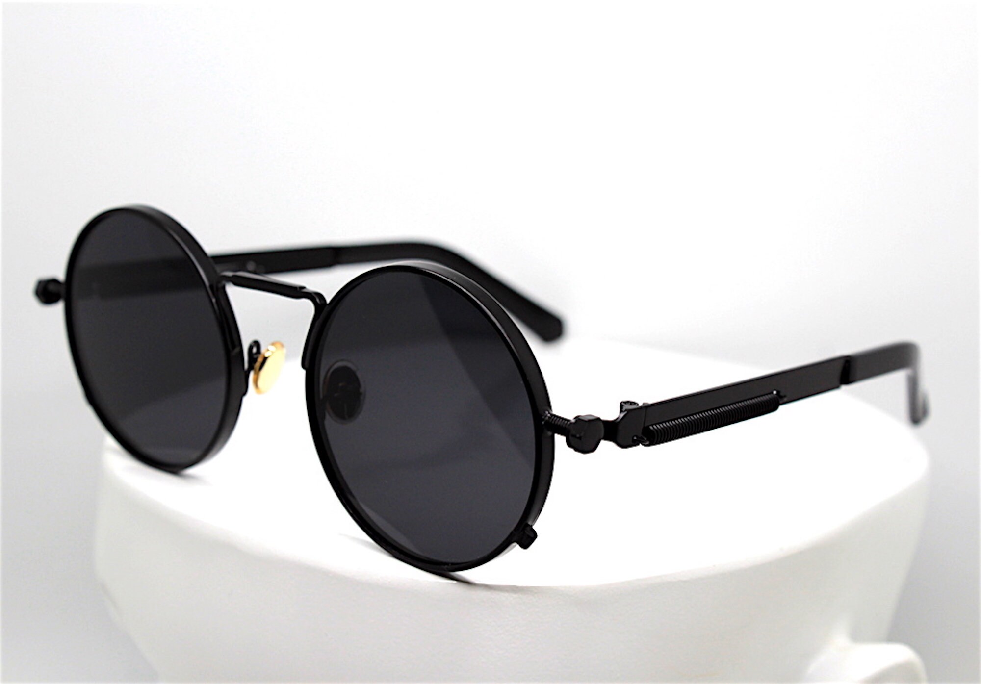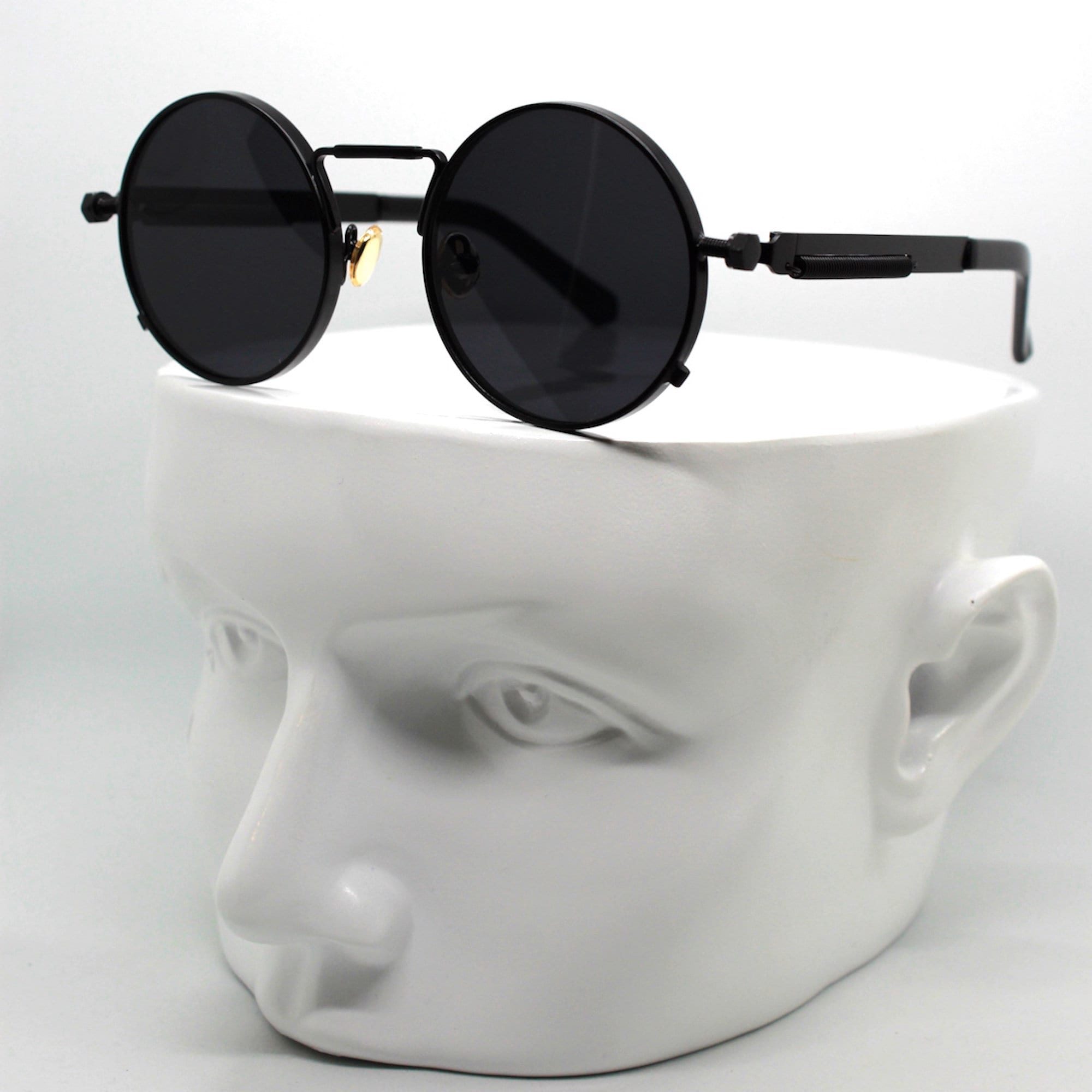 Round oval sunglasses men women black gold Steampunk Vampire gothic Cyberpunk