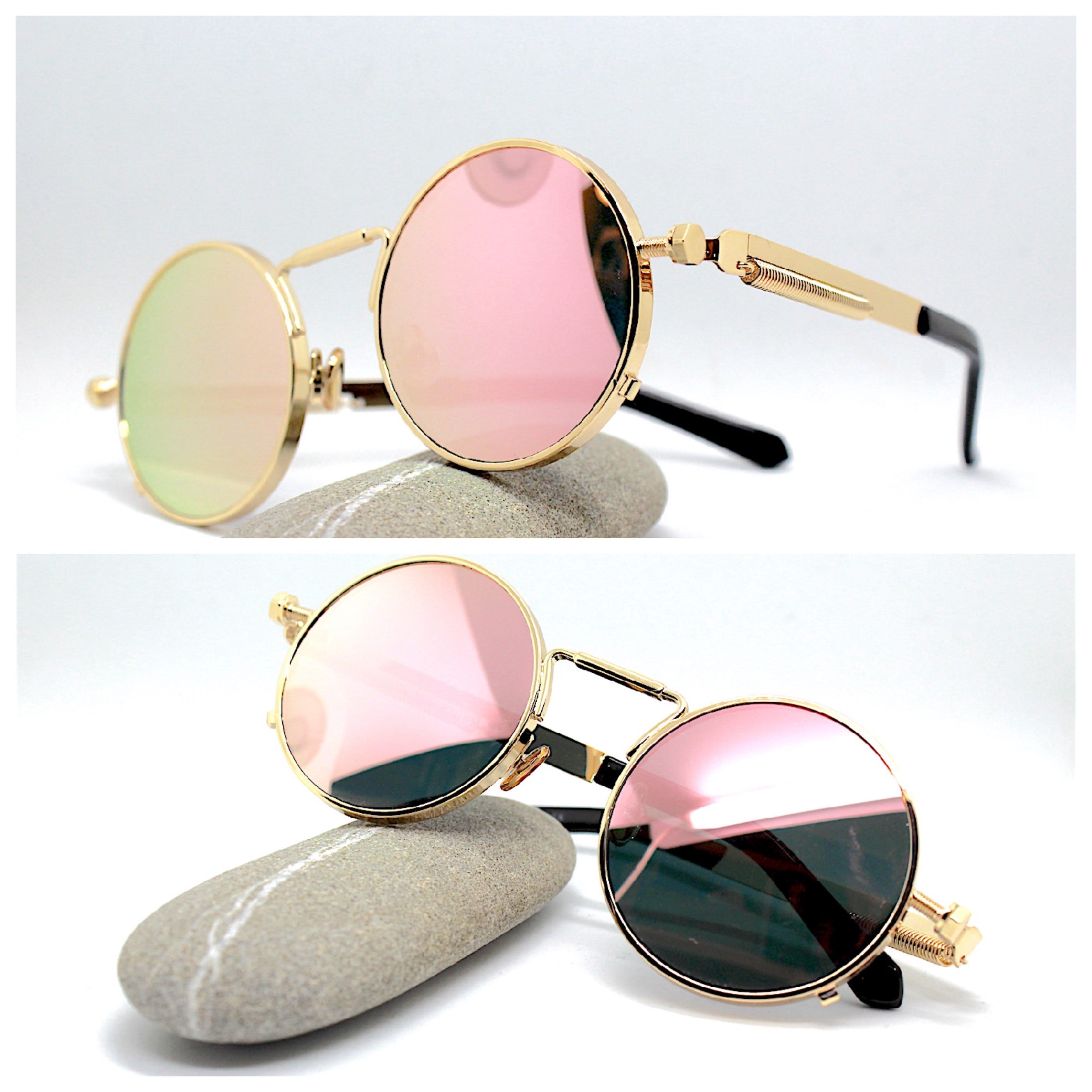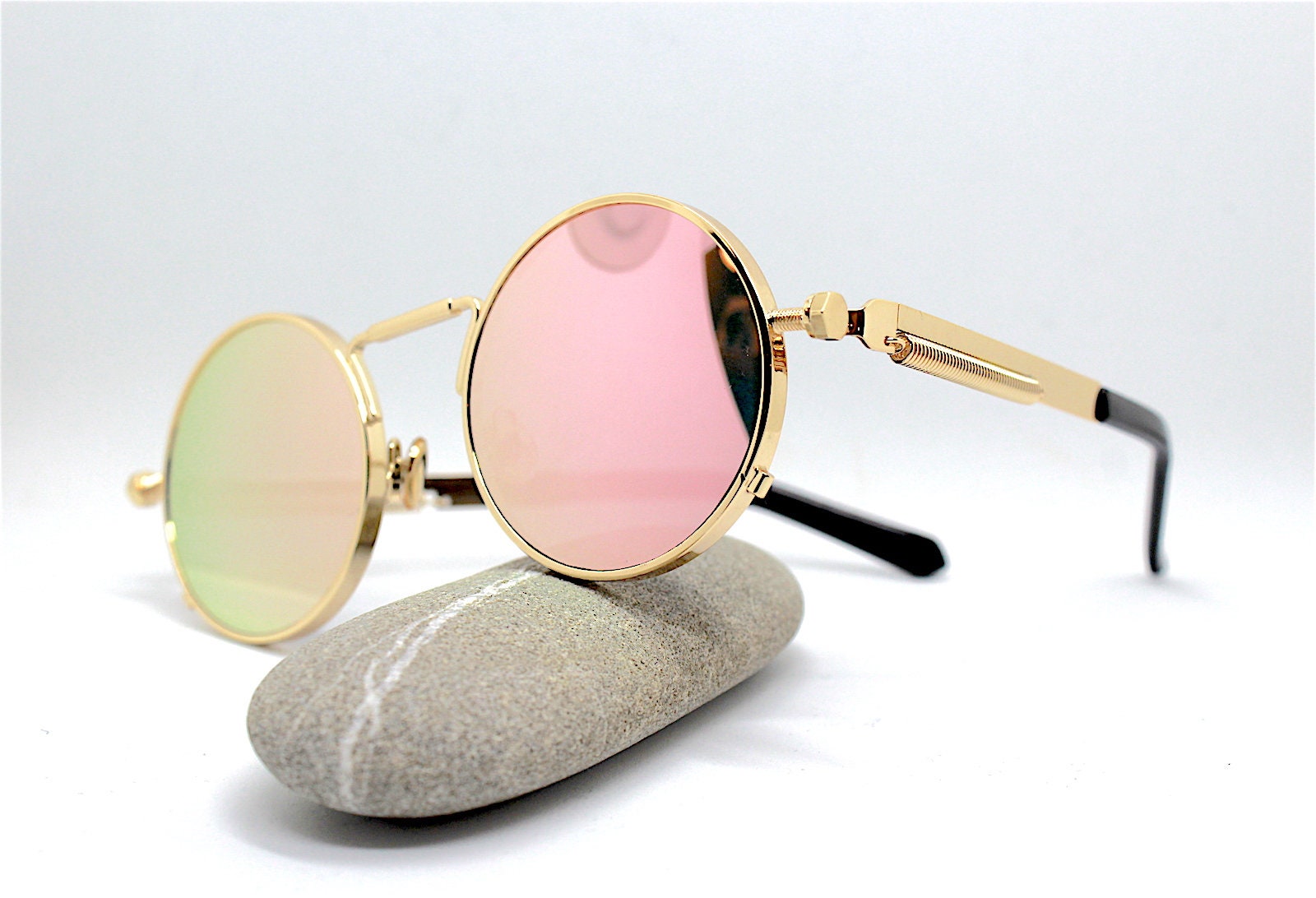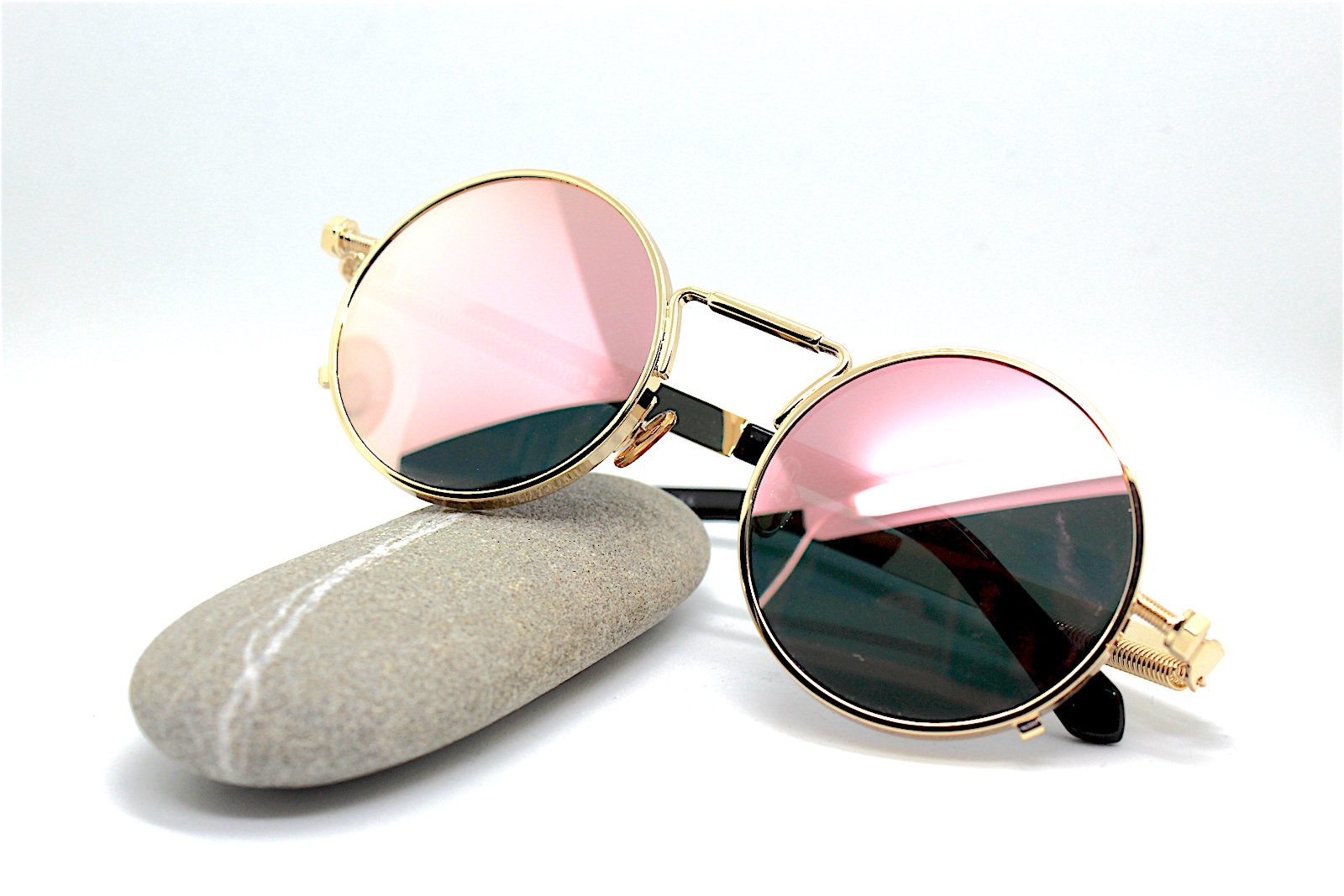 Round sunglasses men and women, retro round oval rose gold mirror, Round sunglasses men and women, gold pink mirror lens, Steampunk Vampire Gothic