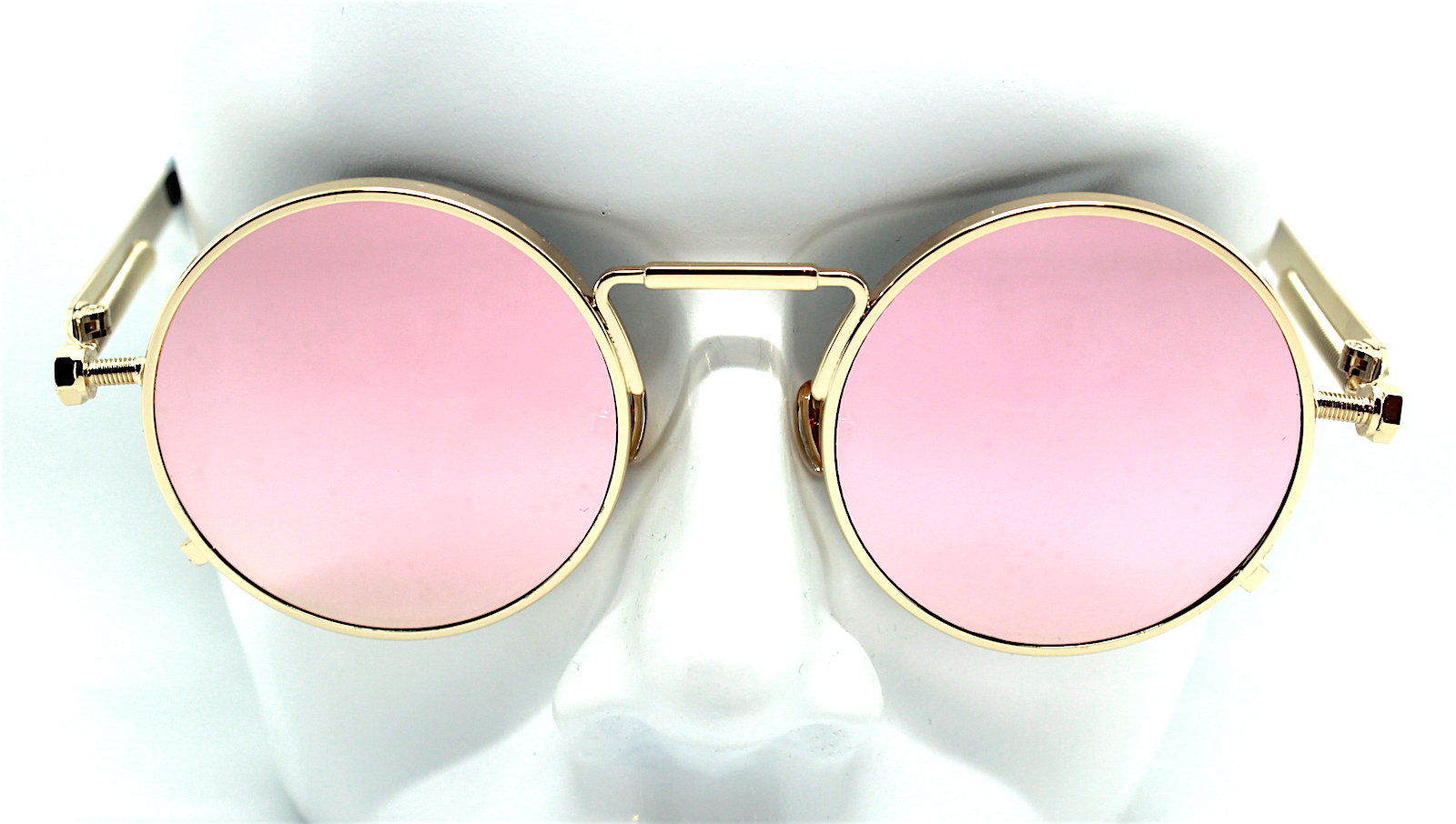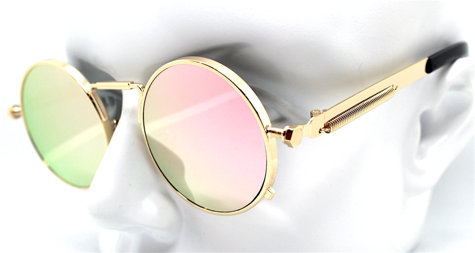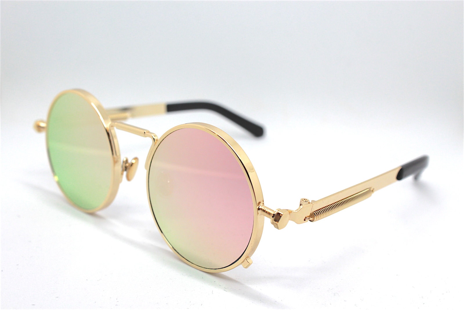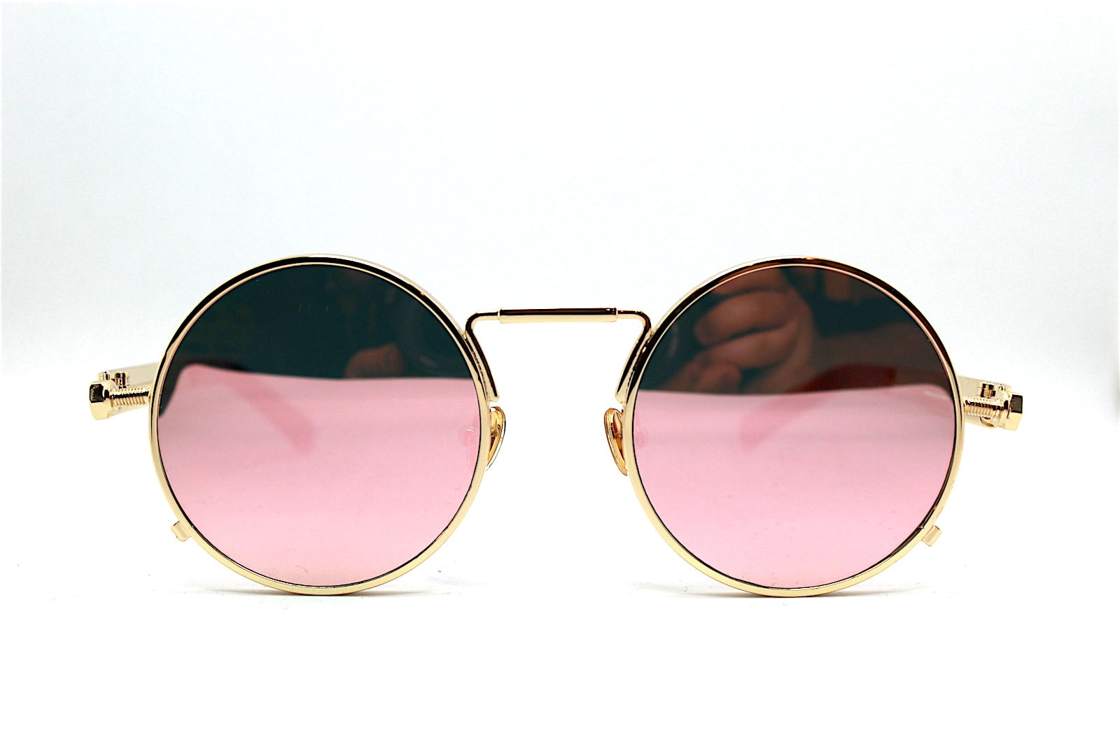 Round sunglasses men and women, retro round oval rose gold mirror, Round sunglasses men and women, gold pink mirror lens, Steampunk Vampire Gothic