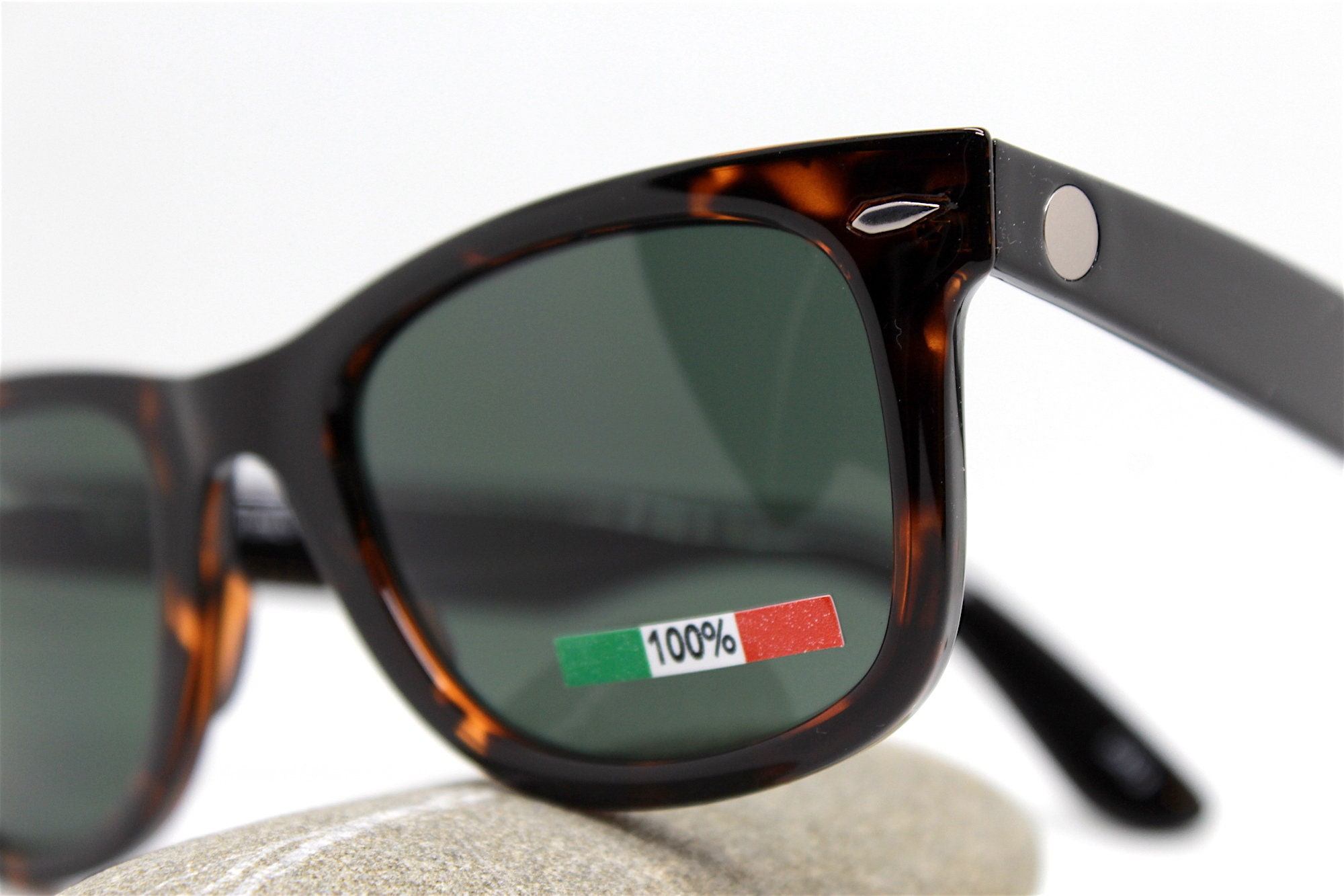 MADE IN ITALY Square classic sunglasses man tortoise black green g15 lens, classic square sunglasses for men tortoise black green